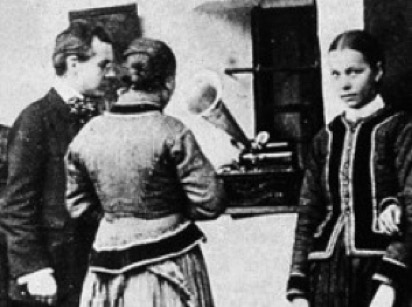 Bartok, at left, with Hungarian peasants singing into his recording machine, circa 1905