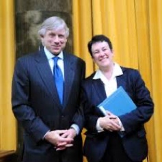 Lee C. Bollinger, President of Columbia University, presents the 2010 Pulitzer Music prize to Jennifer Higdon.