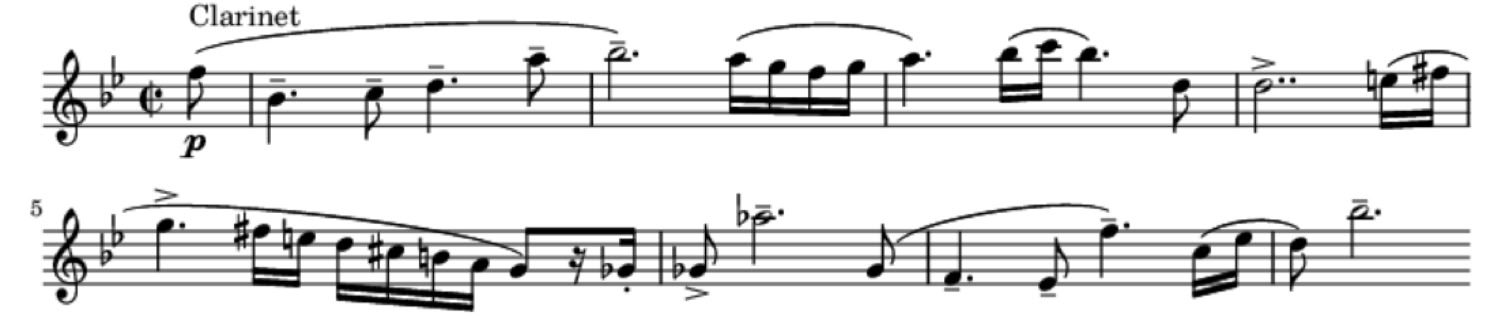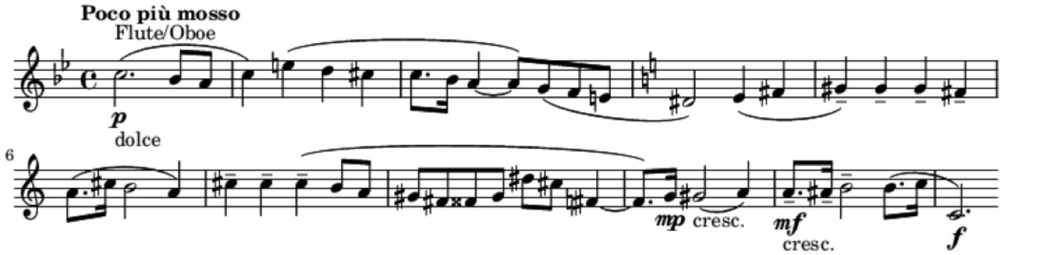 The symphony’s emotional core lies in the Adagio. A long, expansive string melody unfolds with deep lyricism. It should be noted here that Prokofiev considered the ‘lyrical’ element in his music to be the most important, as well as the least-understood by critics and the public.The music gradually intensifies, thickening in texture and darkening in harmony.