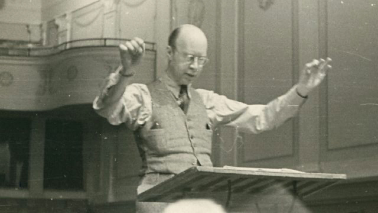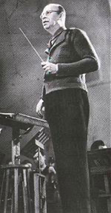 Prokofiev rehearsing an orchestra: his final performance as a conductor was at the première of his Fifth Symphony in Moscow, January 13, 1945