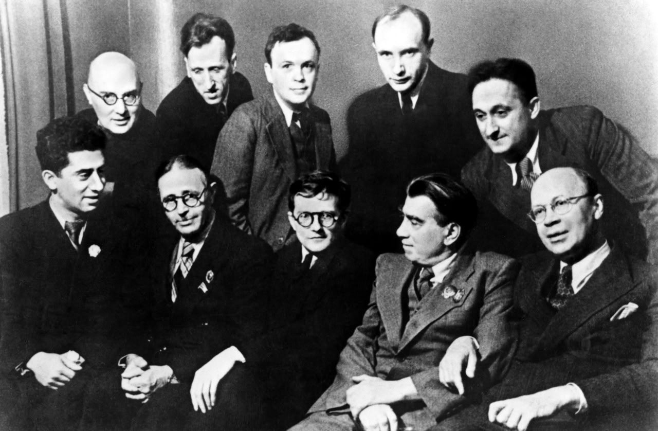 At left, a photo of Andrei Ahdanov. Zhdanov was a powerful Soviet cultural official and close associate of Stalin who, in 1948, spearheaded a campaign against so-called “formalism” in music. Under what became known as the Zhdanov Decree, composers including Prokofiev, Shostakovich, and Khachaturian were publicly condemned for writing music deemed insufficiently accessible to the Soviet people.