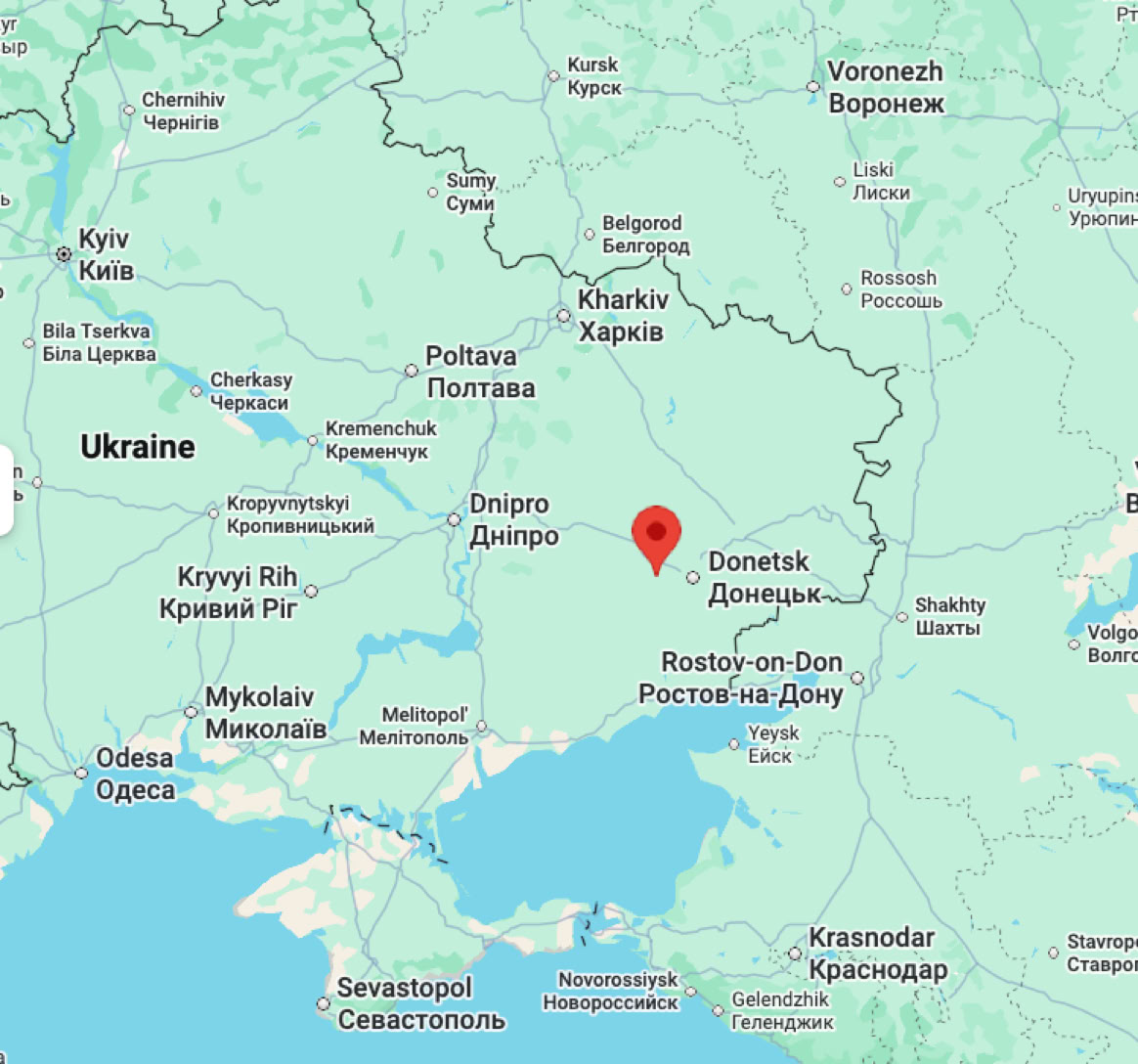 The red indicator is the tiny village of Sontsivka, where Prokofiev was born. The village (population 626) is very close to the Donetsk area and was evacuated in November 2024 due to military operations. Russian troops entered Sontsivka and captured it in mid-December 2024.